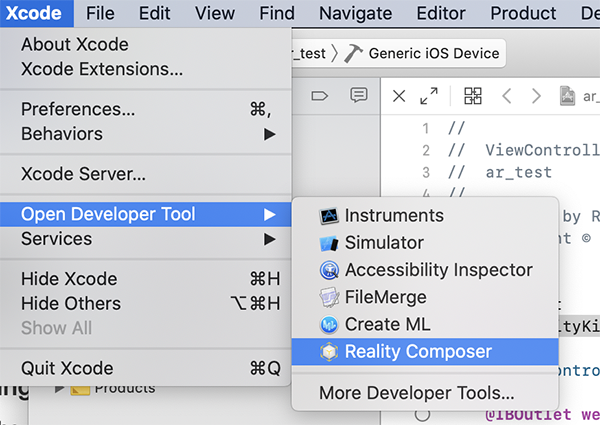 - You can work independently in Reality Composer by opening it in XCode Xcode, Open Developer Tool, Reality Composer. Start an new document. Choose an anchor, like Horizontal (will place image on a flat plane). Add objects, behaviors and actions. Get Experience.rcproject from Reality Composer by saving it with that name. Then you can drag it into your XCode project in the Project Manager