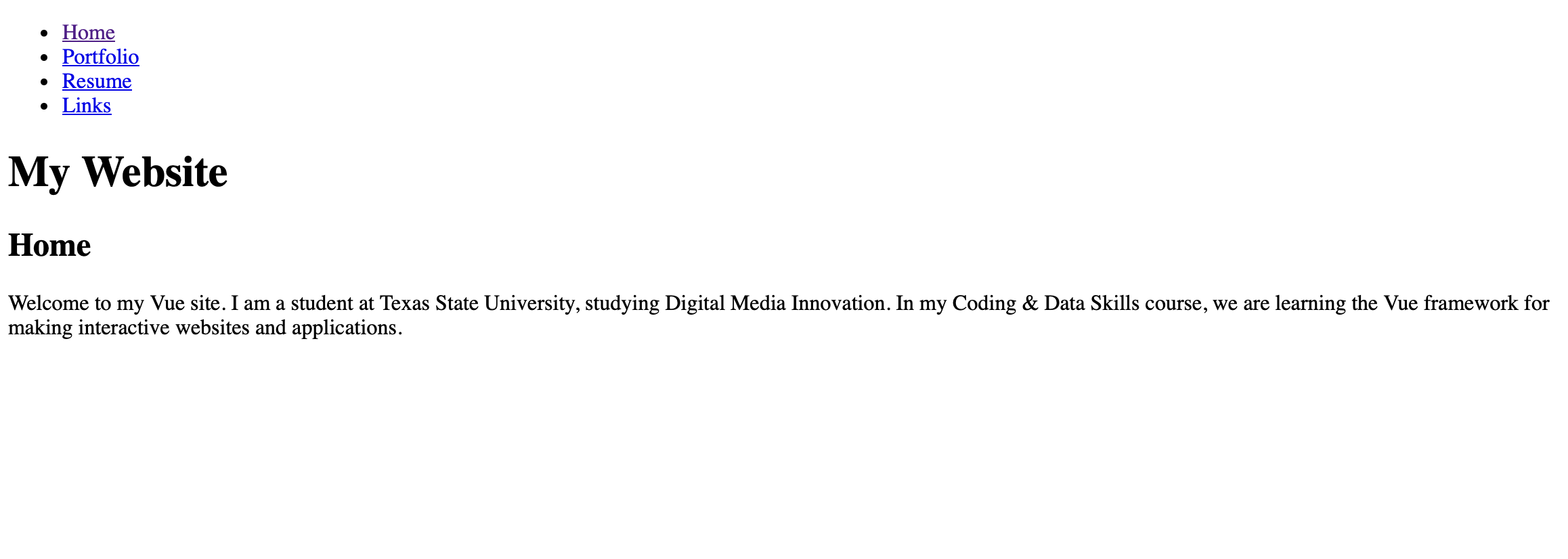 Great job! You have learned how to use Vue.js to create an interactive website using router to direct the navigation. Consider how you will use these techniques for other projects.