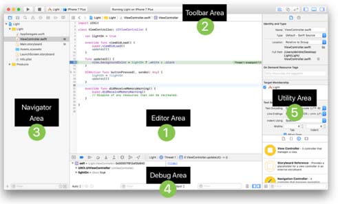 Once you are in the XCode interface, it might seem a bit confusing. Here is a layout of the sections. You will use each of these sections to perform different functions for your application.