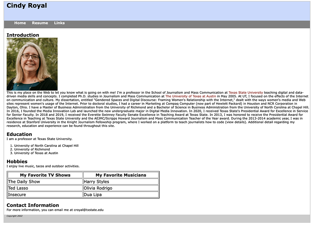 Your page should look something like this when you open it in a browser. When you size the browser, you should see the layout change.